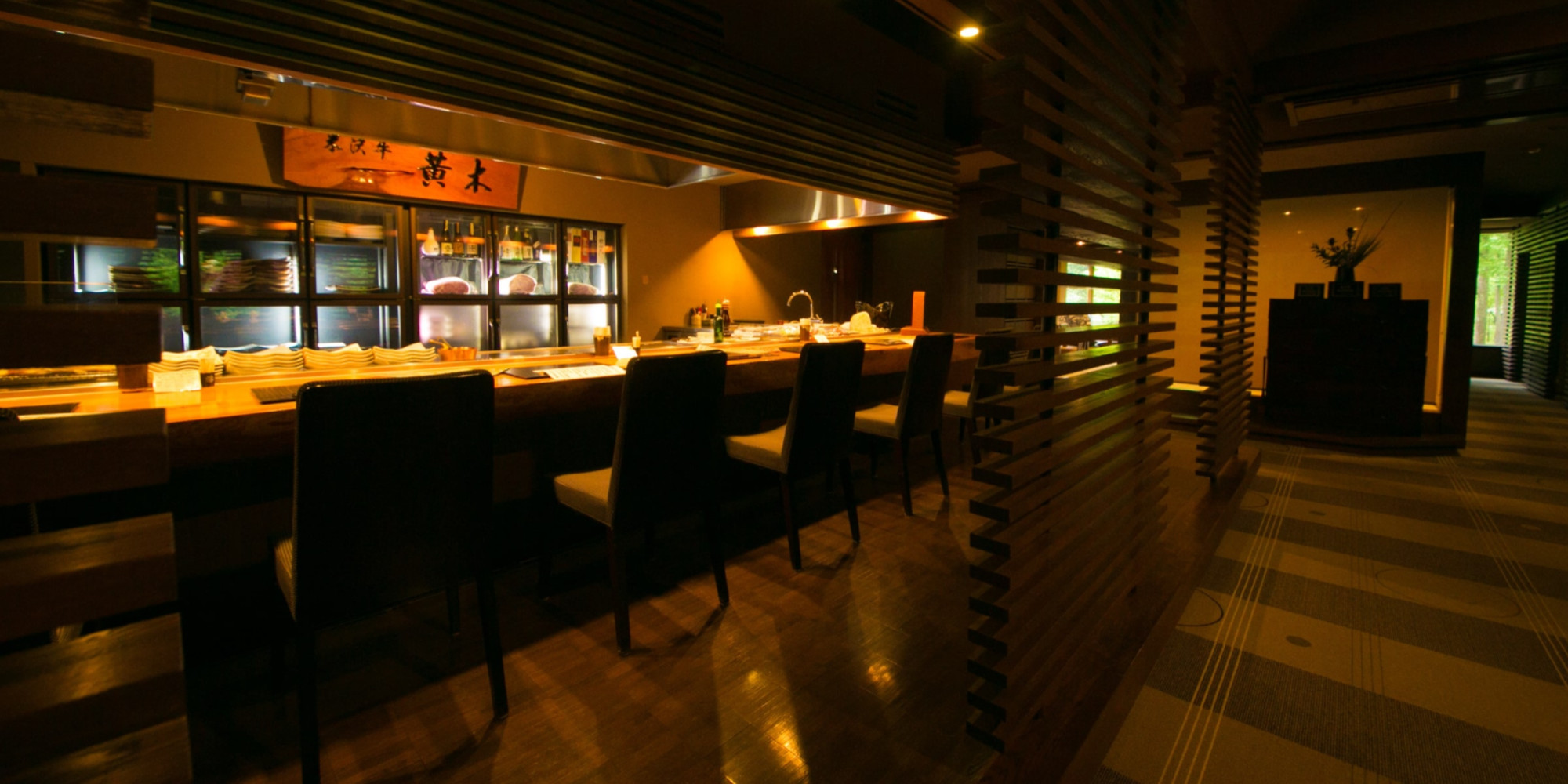 ご夕食は、目の前で調理するオープンキッチンと、個室風お食事処がございます。