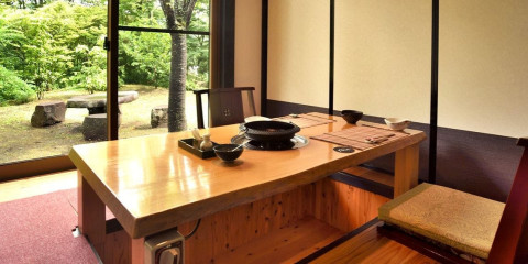 食事処はテーブルと掘りごたつの個室があります。おふたりだけの時間をゆっくりとお過ごしください。