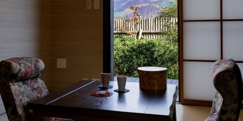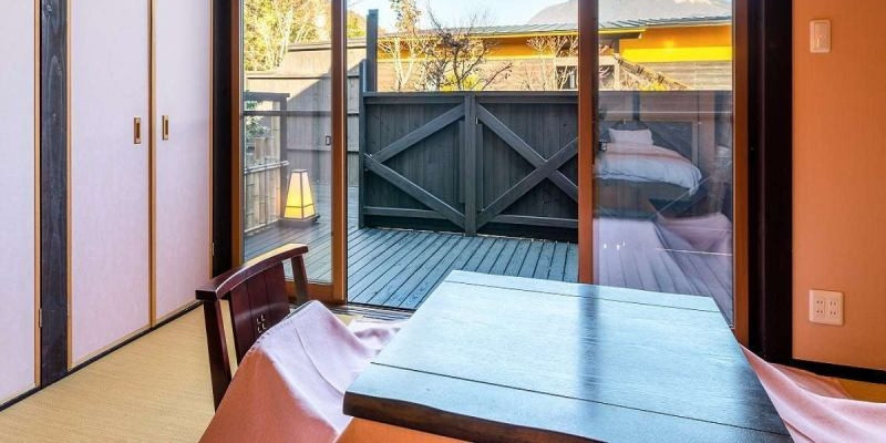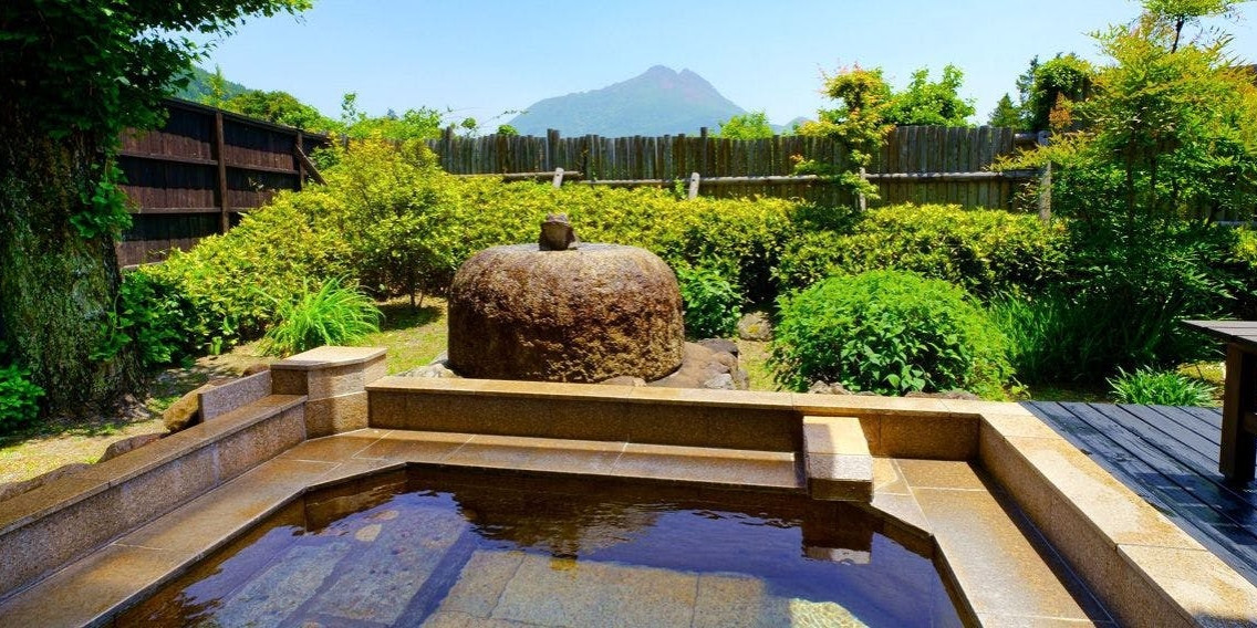 全客室に露天と内湯がついております。お部屋によっては由布岳眺望となっており、露天に入りながら由布岳を見ながら湯浴みを楽しめます。