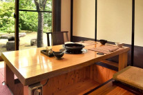 食事処はテーブルと掘りごたつの個室があります。おふたりだけの時間をゆっくりとお過ごしください。