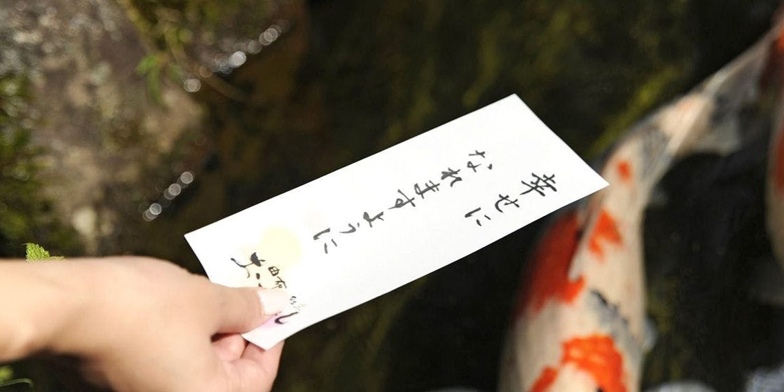 鯉のえさもご準備しております。また、「想い紙」を流すのもいかがでしょうか。