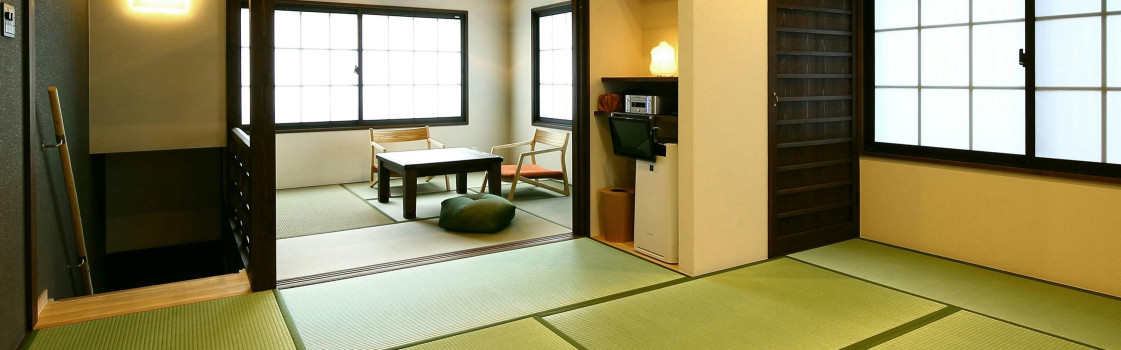 創業は文政年間。創業から200年を誇る、京都の老舗山中油店。この山中油店が持つ築100年超の町家が、一棟貸しの宿泊施設として生まれ変わりました。参の局は、壱の局・弐の局と比べると現代的な雰囲気で、1階が4畳半と7畳の和室。 2階はフローリングのベッドルームと4畳半の和室の2部屋です。玄関を入るとフローリングのスペースがあり、そこを中心に和室へと続きます。